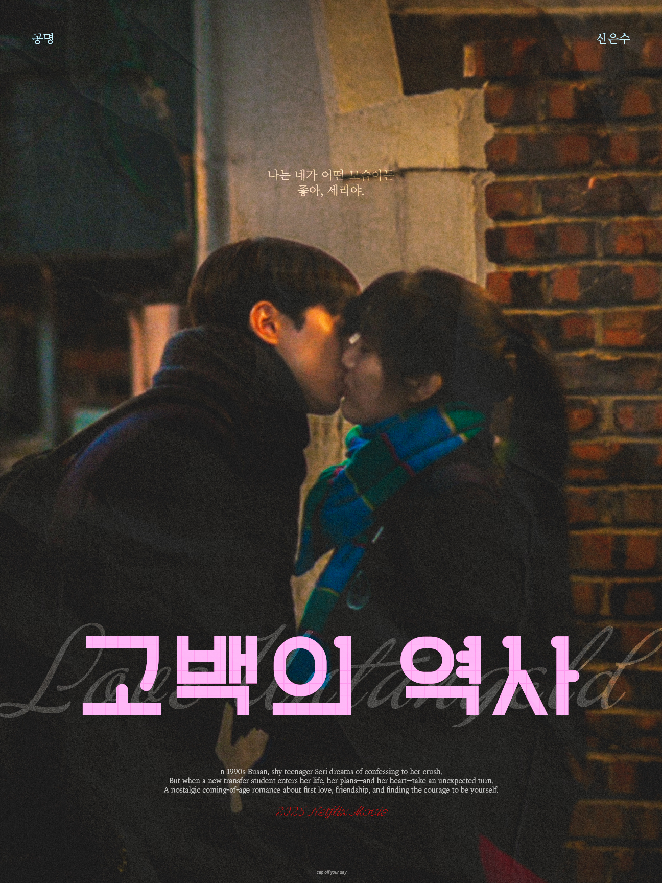 MOVIE 2025. 8. 31. 고백의 역사 A A default 고백의 역사 공명 신은수 1998년, 열아홉 소녀 박세리가 일생일대의 고백을 앞두고 평생의 콤플렉스인 악성 곱슬머리를 펴기 위한 작전을 계획하던 중 전학생 한윤석과 얽히며 벌어지는 청춘 로맨스 NO RE-EDIT and NO LOGO CROP🚨2차 가공 및 로고 크롭 금지🚨 ㄴ 첫키스 포스터 (1종) ㄴ Ref. <뷰티 인사이드> (2015) NO RE-EDIT and NO LOGO CROP🚨2차 가공 및 로고 크롭 금지🚨 공유하기 게시글 관리 DAY 'MOVIE' 카테고리의 다른 글 굿뉴스 (0) 2025.10.19
