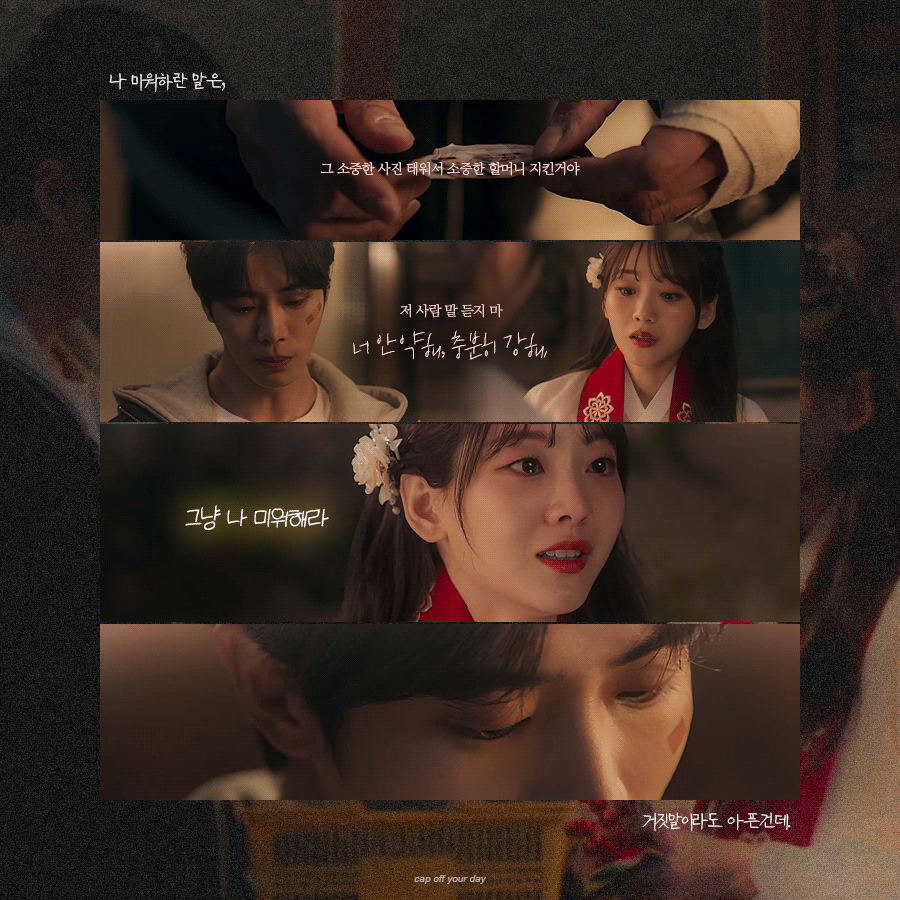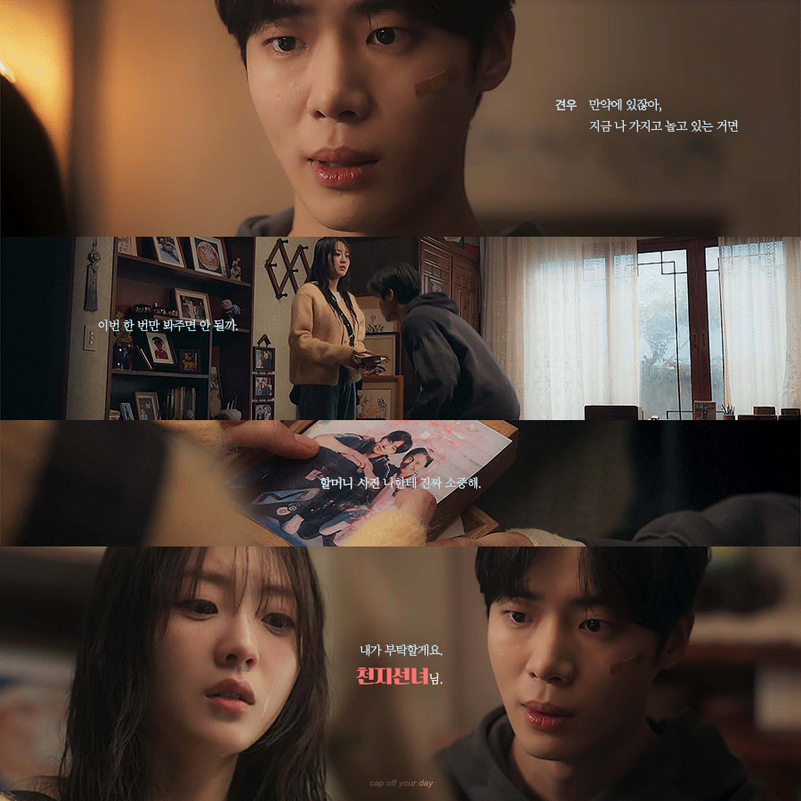 비에 젖어 무너진 성아 앞에 우산을 조용히 내민 사람은 다름 아닌 견우. 차가운 외면 뒤에 남아 있던 온기가 잠시, 두 사람의 마음을 흔든다. 하지만 그 따뜻함은 오래가지 않는다. 성아는 옥순의 사진에 깃든 저주의 흔적을 발견하고, 사진 속 저주를 정화하기 위해 움직이지만, 그 부적을 그린 사람이 염화라는 사실이 드러난다. 성아는 그제야 깨닫는다. 그동안 견우를 아프게 해온 이가, 바로 염화였다는 사실을. 그는 상문이라 불리며 위협받아 왔고, 염화는 그 견우의 고통을 즐기고 있었다